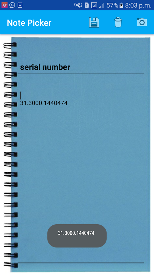 The best feature you gain from Note Picker is Scanning notes simply from your camera without respect to where it placed. Any note contained in paper,notice,book,fabric,wall or any other place can be easily copied to your note from Note Picker.Plus, notes that can hardly typed(long serial numbers with special characters etc) can be added to your note with convenient manner by this Application